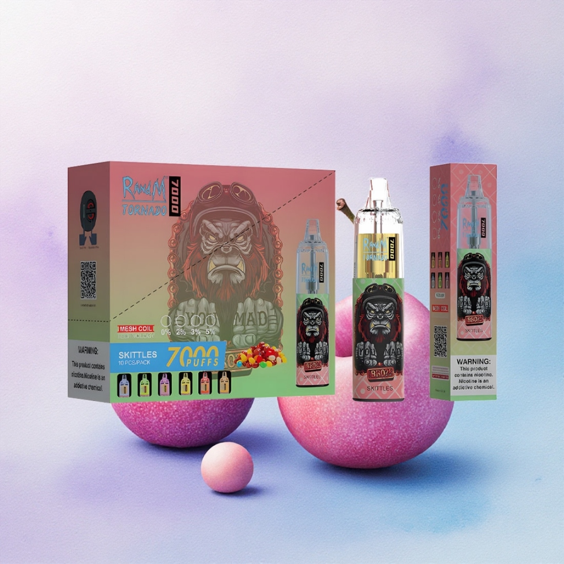RandM Fumot Tornado 7000 Puffs Skittles Lynmesh med 5% nikotin og 850 mAh