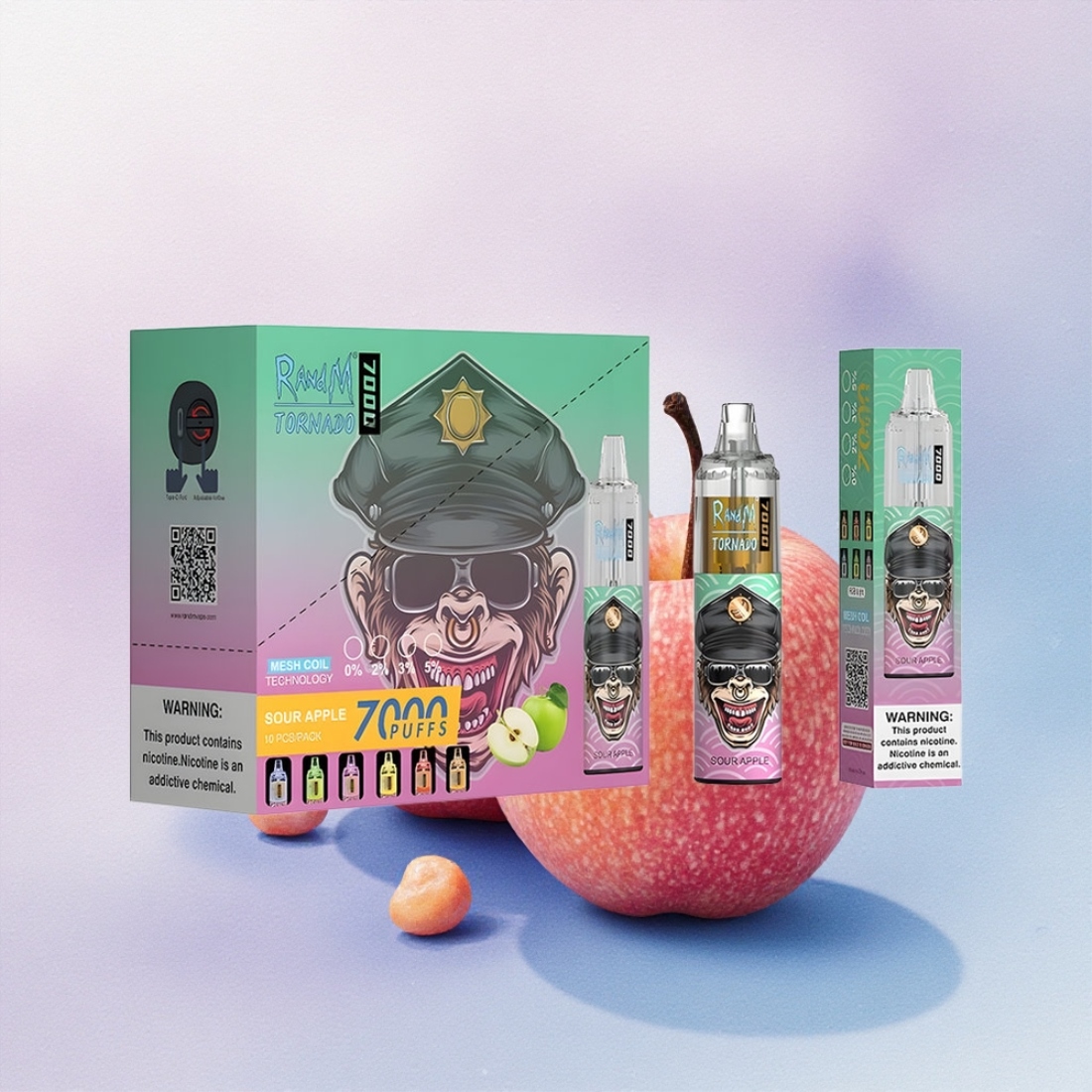 RandM Fumot Tornado 7000 Puffs Sur Eple med 5% nikotin og 850 mAh