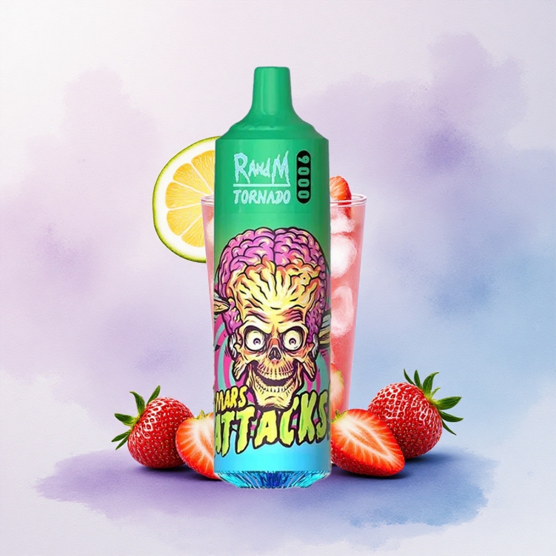 RandM Fumot Tornado 9000 Puffs Jordbær Sitronade med 850 mAh og Mesh Coil