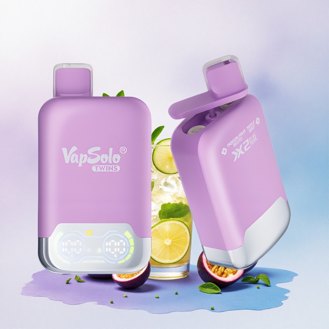 Vapsolo Twins 20000 Puffs Passionsfrukt Mojito & Trippelmynte med 40 ml E-væske og Type-C-lading