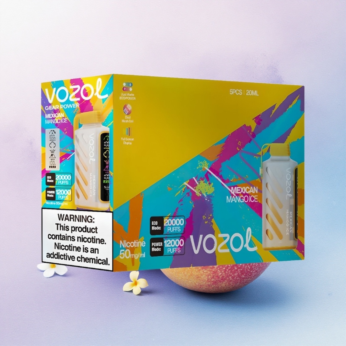 VOZOL Gear Power 20000 Puffs Norsk Mango Is med Dual Mesh Coil og Full Skjerm