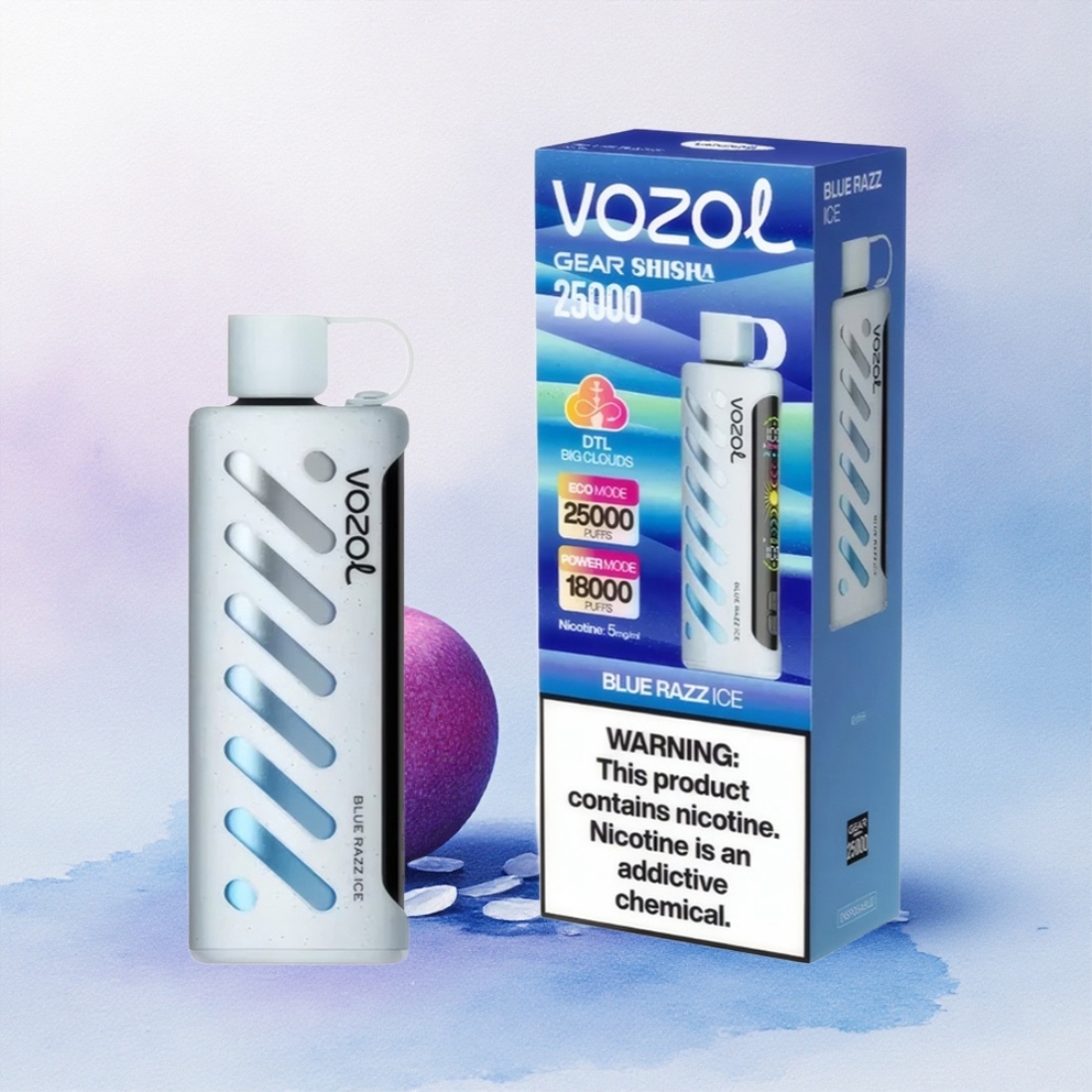VOZOL Gear Shisha 25000 Puffs Blå Bringebær Is med Dual Mesh og 5mg nikotin