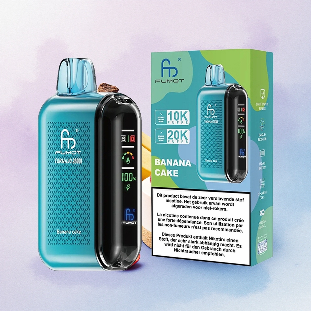 Fumot Tornado 20000 Puffs Banankake Med Dual Mesh Coil Og 850mAh Batteri