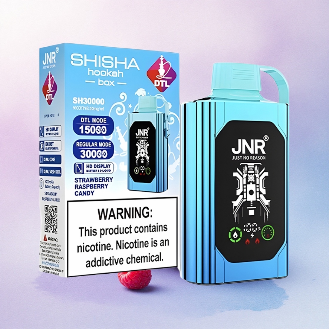 JNR Shisha Hookah Box 20500 Jordbær Bringebær Candy med HD Display og 1000mAh